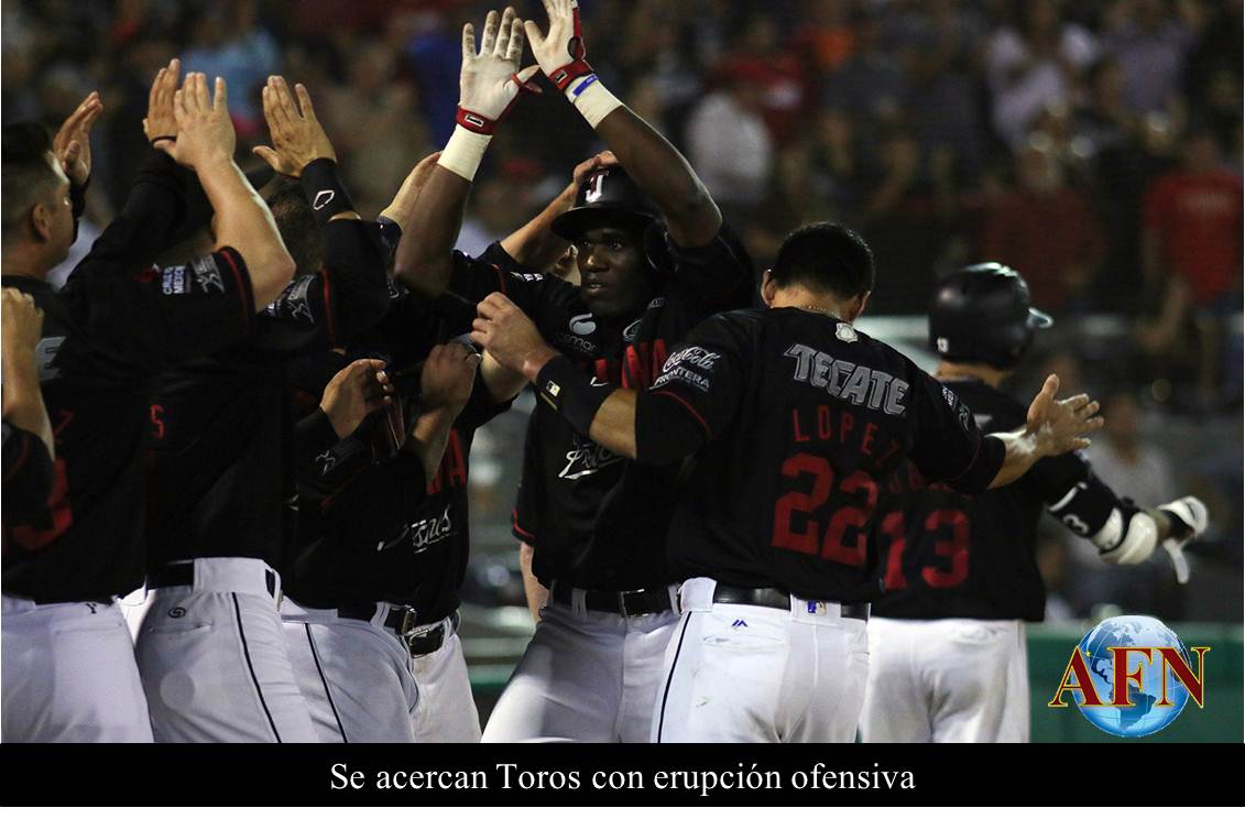 El estadio Gasmart estalló en la entrada de la suerte cuando los Toros de Tijuana armaron un poderoso racimo de cinco carreras a base de poder, para poner el juego en la congeladora.