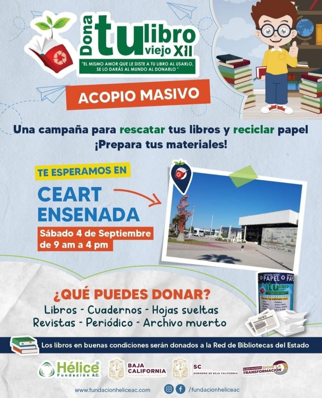 ENSENADA BC 31 DE AGOSTO DE 2021 (AFN).- La Dirección de Administración Urbana, Ecología y Medio Ambiente del XXIII Ayuntamiento, hizo un llamado para sumarse a la campaña “Dona tu libro viejo”, de la Fundación Hélice, A.C., que tiene como propósito fomentar el reciclado entre la población.