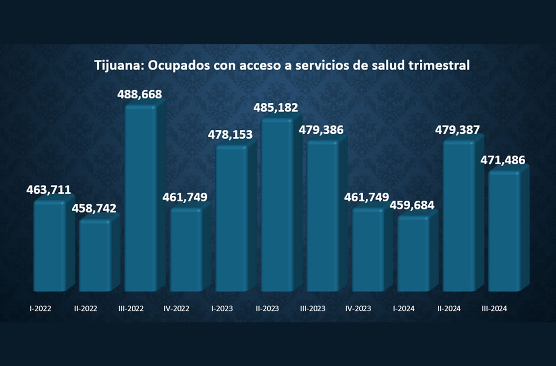 TIJUANA, BC, 5 DE DICIEMBRE DE 2024 (AFN).- La Población Económicamente Activa (PEA) ocupada en Tijuana con acceso a servicios de salud mostró una disminución del 1.6% a tasa anual durante el tercer trimestre del año respecto al mismo periodo de 2023, de acuerdo con la Encuesta Nacional de Ocupación y Empleo (ENOE) que dio a conocer el Instituto Nacional de Estadística y Geografía (INEGI).