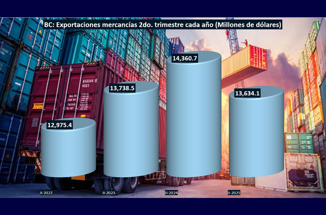 TIJUANA BC 2 DE OCTUBRE DE 2025 (AFN).- El valor de las exportaciones de mercancías en Baja California mostró una caída del 5.1% a tasa anual durante el segundo trimestre de 2025 respecto al mismo lapso, pero del año anterior, de acuerdo con los resultados que dio a conocer el Instituto Nacional de Estadística y Geografía (INEGI).