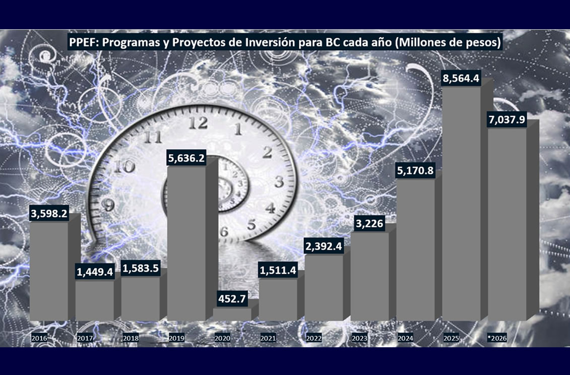 De tal manera, el gobierno federal estaría esperando la aprobación de la Cámara de Diputados para destinar 7 mil 037.9 millones de pesos en Programas y Proyectos de Inversión para Baja California en 2026, es decir, una reducción de Mil 526.5 millones de pesos respecto a los 8 mil 564.4 millones de pesos aprobados en 2025.