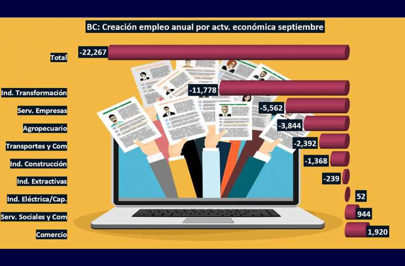TIJUANA BC 13 DE OCTUBRE DE 2025 (AFN).- El mercado del trabajo en Baja California perdió 22 mil 267 empleos formales del 30 de setiembre de 2024 al 30 de septiembre de 2025, para acentuarse la crisis por la que pasa la economía en el Estado, de acuerdo con las cifras del Instituto Mexicano del Seguro Social (IMSS).