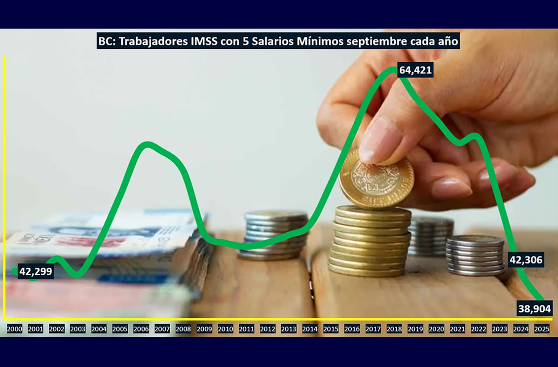 TIJUANA BC 16 DE OCTUBRE DE 2025 (AFN).- La precarización en el mercado del trabajo de Baja California se agudizó durante 2025 en niveles alarmantes que podrían provocar la ralentización de la economía estatal, de acuerdo con los resultados delegacionales del Instituto Mexicano del Seguro Social (IMSS).