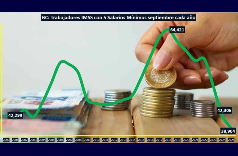 Al 30 de septiembre de 2024, las cifras difundidas por el organismo de salud para Baja California reportan un total de 38 mil 902 personas que ganan 5 SM por debajo de los 42 mil 306 registrados en igual mes del año pasado.