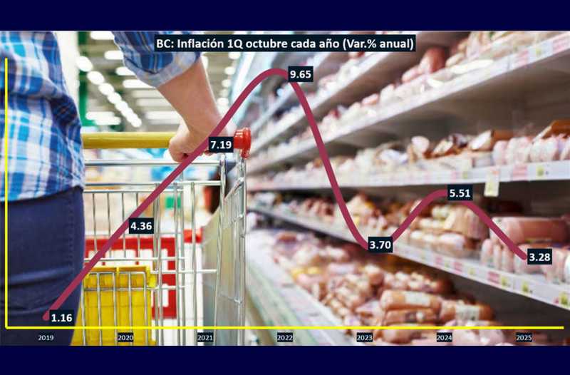 TIJUANA BC 23 DE OCTUBRE DE 2025 (AFN).- La inflación general de Baja California fue de 0.14% en la primera quincena de octubre de 2025 para impulsar la anualizada a 3.28% inferior al 5.21% a tasa anual que registró en ese mismo lapso del año pasado, de acuerdo con las cifras que dio a conocer el Instituto Nacional de Estadística y Geografía (INEGI).