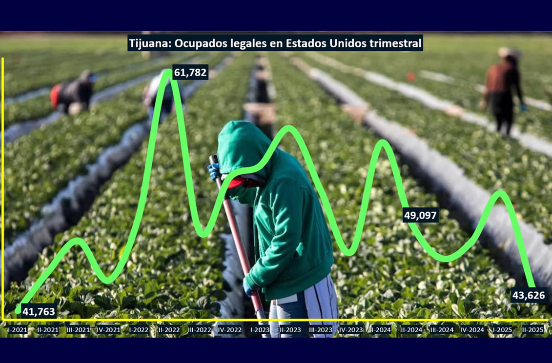 En valores absolutos, al 30 de junio de 2025, los datos del INEGI para Tijuana documentaron un total de 43 mil 626 personas de la Población Económicamente Activa con trabajo formal en el país vecino, cifra por debajo de los 49 mil 097 que se registraron al 30 de junio de 2024.