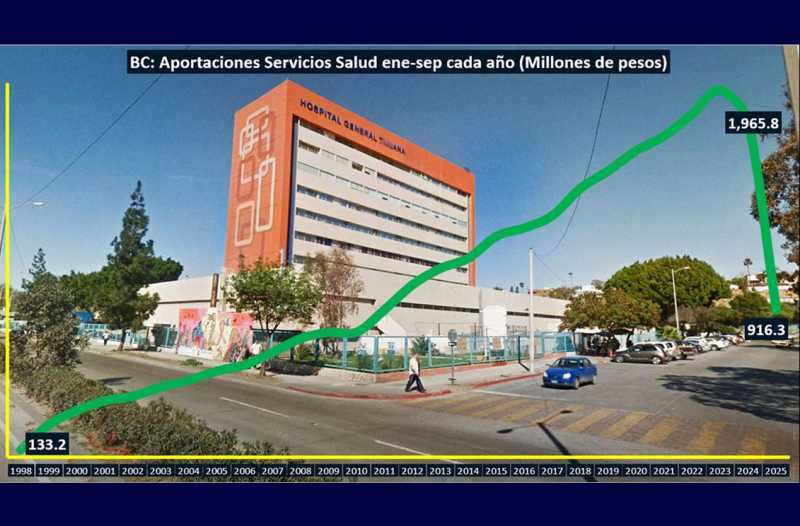 TIJUANA BC 6 DE NOVIEMBRE DE 2025 (AFN).- El gobierno del Estado de Baja California registró un recorte del 55.1% real a tasa anual en las transferencias de recursos para el sector de salud entre enero y septiembre de 2025, de acuerdo con los resultados que dio a conocer la Secretaría de Hacienda y Crédito Público (SHCP).