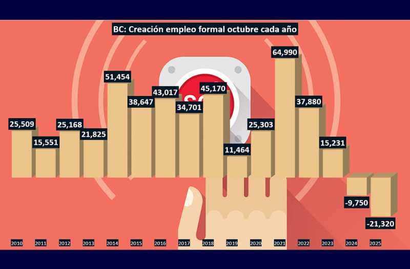 No se debe soslayar que, en el lapso de medición de octubre contra octubre, el mercado laboral bajacaliforniano reportó el número más alto de recortes de personal en los últimos 16 años, siendo el problema interno por la fuerte carga fiscal y las reformas laborales que están impactando a la formalidad.
