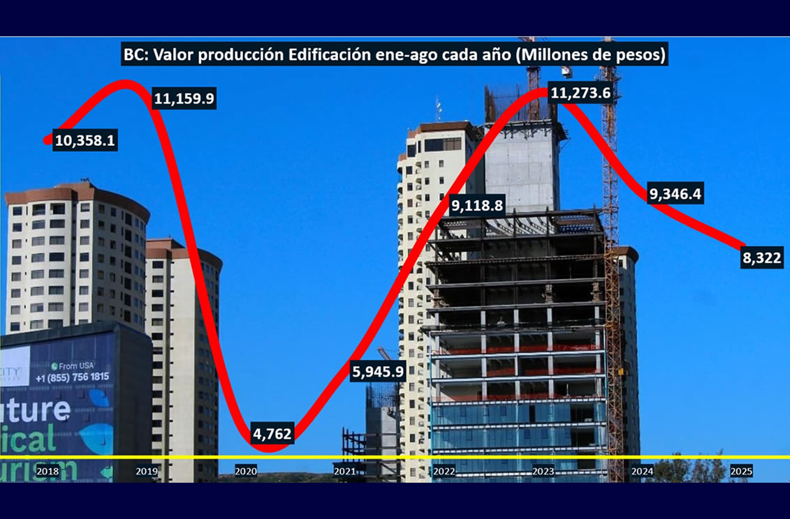 En ese sentido, los datos más recientes del INEGI indican que la economía de Baja California se cayó 1% anual al segundo trimestre de 2025, lo que se alinea con el comportamiento registrado en la Industria de la Construcción en general.