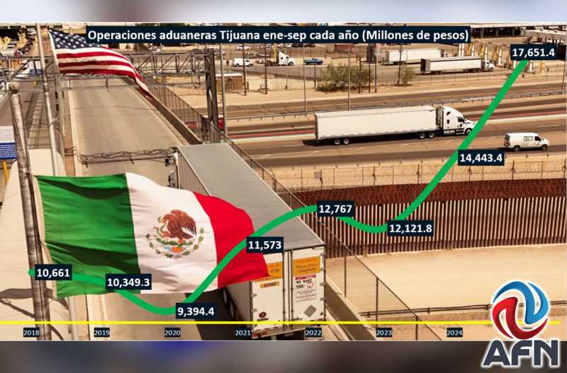 Los datos del ANAM para Tijuana documentan que es la mayor recaudación por operaciones aduaneras desde que se tiene información disponible para un periodo entre enero y septiembre de cada año.