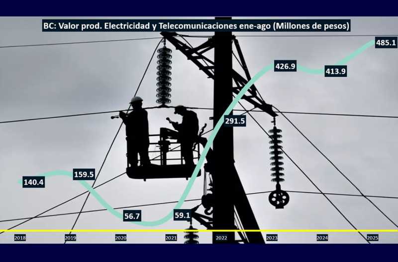 TIJUANA BC 20 DE NOVIEMBRE DE 2025 (AFN).- En Baja California, las obras de Electricidad y Telecomunicaciones reportaron un incremento de 17.2% a tasa anual en el lapso acumulado enero-agosto de 2025 respecto a los mismos ocho meses de 2024, de acuerdo con las cifras del Instituto Nacional de Estadística y Geografía (INEGI).
