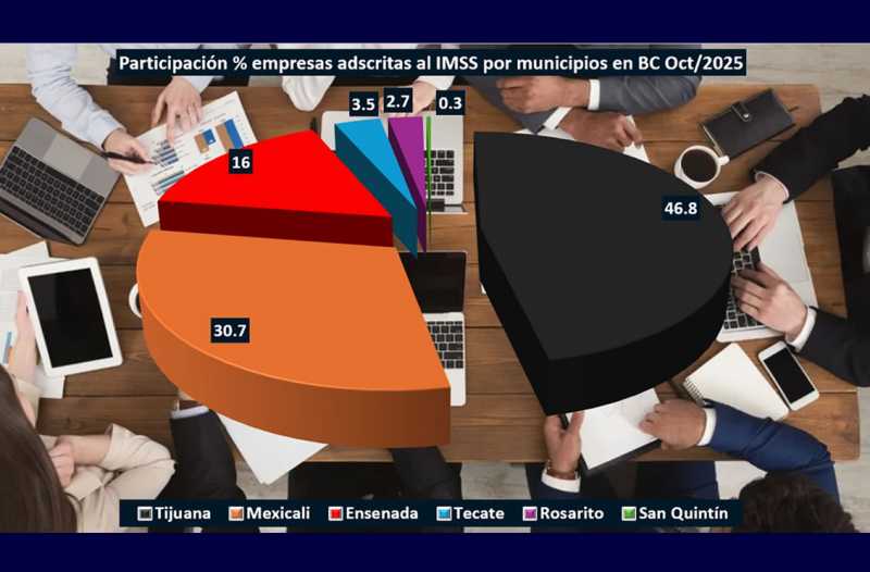 En ese sentido, Tijuana aporta el 46.8 por ciento de los patrones registrados ante el IMSS en Baja California, después le sigue Mexicali con el 30.7 por ciento y en tercer lugar se encuentra Ensenada con el 16 por ciento.