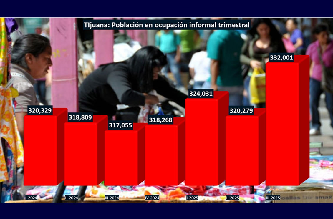 TIJUANA BC 17 DE DICIEMBRE DE 2025 (AFN).- La caída de la economía reflejada en la falta de oportunidades en el mercado del trabajo impactó a Tijuana al reportar un aumento del 5% en la Población Económicamente Activa (PEA) en ocupación informal al tercer trimestre de 2025, arrojó la Encuesta Nacional de Ocupación y Empleo (ENOE) del Instituto Nacional de Estadística y Geografía (INEGI).
