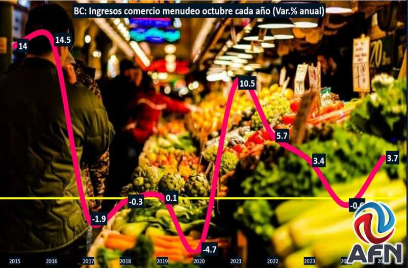 TIJUANA, BC, 27 DE DICIEMBRE DE 2025 (AFN).- Las empresas del comercio organizado minorista de Baja California documentaron un alza del 3.7% a tasa anual en octubre de 2025 en comparación al mismo mes, pero del año pasado, muestran las cifras del Instituto Nacional de Estadística y Geografía (INEGI).