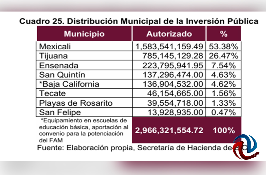 Según lo aprobado en el Presupuesto de Egresos de Baja California 2026 se destinarían 2 mil 966.3 millones de pesos para obra pública, lo que apenas representa el 0.3% del valor del Producto Interno Bruto del Estado en el orden de los 947 mil 677 millones de pesos, de acuerdo con las cifras más recientes del Instituto Nacional de Estadística y Geografía (INEGI).