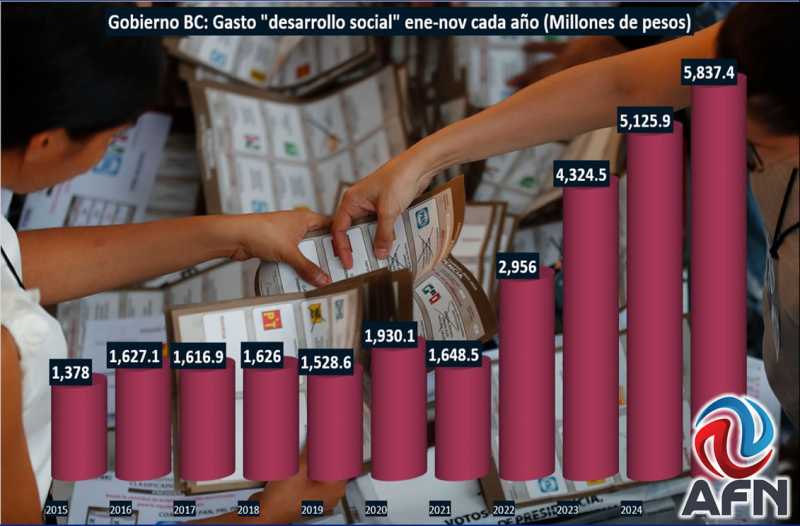TIJUANA, BC, 10 DE ENERO DE 2025 (AFN).- El gobierno del Estado de Baja California incrementó 12.2% real a tasa anual el presupuesto público destinado a programas de “Desarrollo Social” al 30 de noviembre de 2025, según el reporte financiero-presupuestal de la Secretaría de Hacienda local.