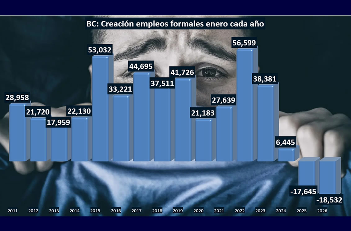 TIJUANA BC 10 DE FEBRERO DE 2026 (AFN).- El mercado laboral de Baja California arrancó 2026 con señales de alerta al perder 18 mil 532 empleos formales durante enero respecto al mismo mes de 2025, de acuerdo con las cifras del Instituto Mexicano del Seguro Social (IMSS).