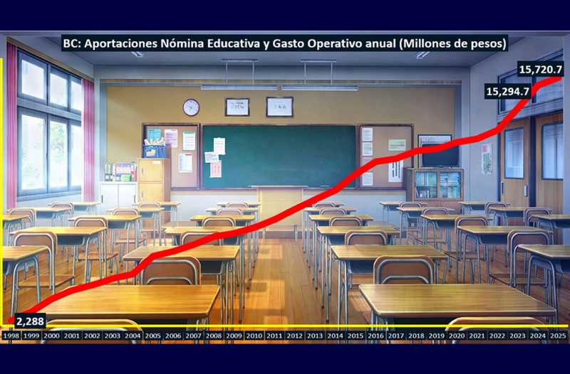 Regresado a Baja California, las cifras de la Hacienda federal reportan solo en diciembre de 2025 una reducción del 19.5% real a tasa anual en el pago a maestros en confrontación a lo erogado en el doceavo mes de 2024.