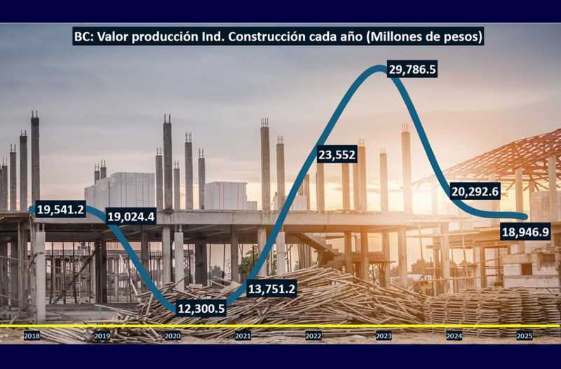 TIJUANA BC 2 DE MARZO DE 2026 (AFN).- Las cifras del Instituto Nacional de Estadística y Geografía (INEGI) muestran que la Industria de la Construcción de Baja California cerró 2025 con una contracción del 6.6% a tasa anual respecto al 2024, por lo que se espera una recesión económica prolongada por su efector multiplicador.