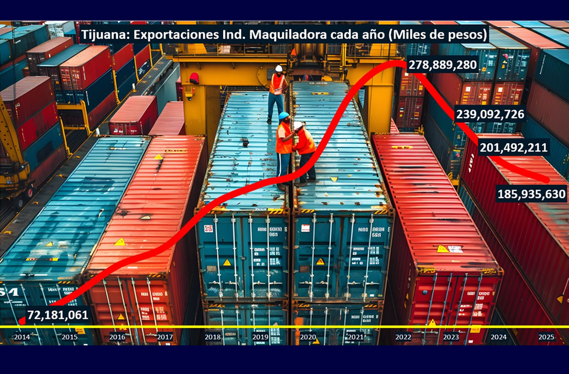 Además, los resultados del INEGI para Tijuana confirman que el importe por exportaciones de las maquiladoras durante 2025 es el menor volumen en los últimos cuatros años para un periodo entre enero y diciembre.