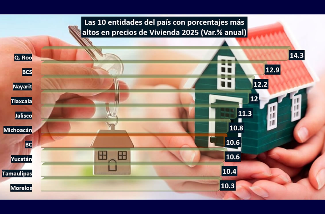TIJUANA BC 12 DE MARZO DE 2026 (AFN).- Baja California se encuentra en la posición ocho de las 32 entidades federativas con el mayor porcentaje en los precios de la Vivienda al cerrar el ejercicio fiscal de 2025, de acuerdo con los resultados del Índice de la Sociedad Hipotecaria Federal (SHP).