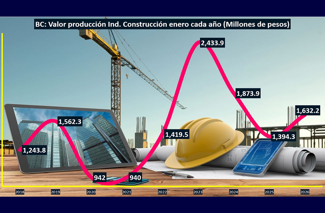 Los datos del organismo gubernamental arrojaron para el Estado un valor de la producción de las empresas constructoras por 1,632.2 millones de pesos en el primer mes de 2026 por arriba de los 1,394 millones de pesos documentados en enero de 2025.