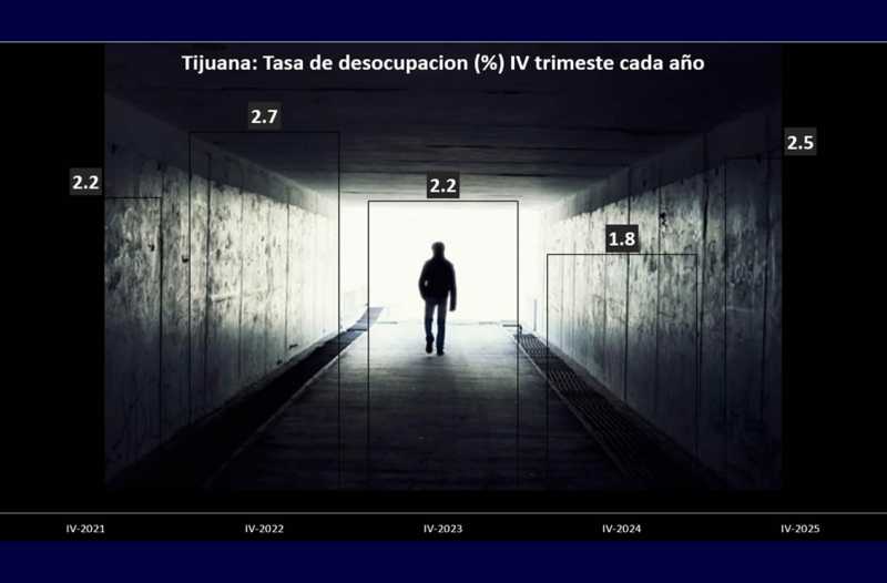 Al cuarto trimestre de 2025, la ENOE arroja para Tijuana un total de 22 mil 228 personas desocupadas, lo que resultó en 6 mil 260 ciudadanos más que no cuentan con ocupación respecto a las 15 mil 968 registradas durante octubre y diciembre de 2024.