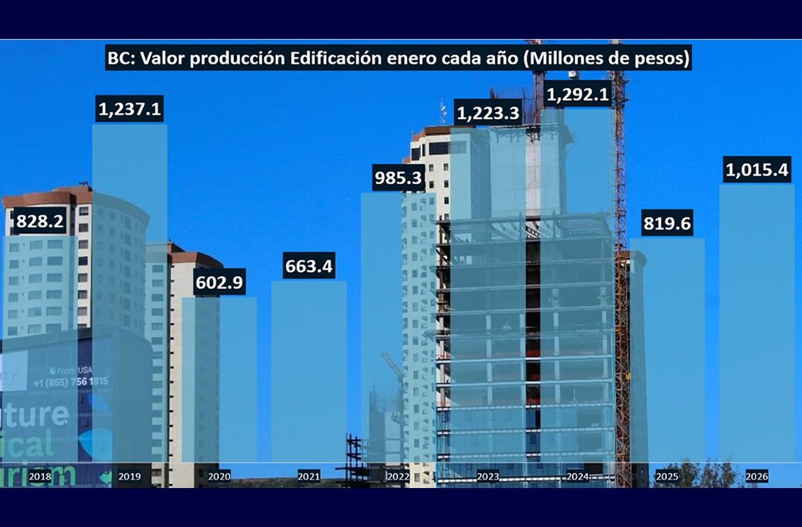 TIJUANA BC 6 DE ABRIL DE 2026 (AFN).- El sector privado de Baja California impulsó la Edificación tras marcar un repunte del 24% a tasa anual durante enero de 2026 en comparación a los resultados documentadas para ese mismo mes de 2025, de acuerdo con las cifras que dio a conocer el Instituto Nacional de Estadística y Geografía (INEGI).