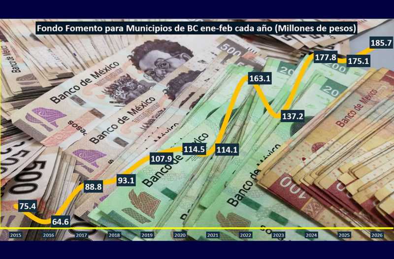 TIJJUANA BC 11 DE ABRIL DE 2026 (AFN).- El gobierno del Estado de Baja California recibió un incremento del 2.1% real a tasa anual en el Fondo de Fomento Municipal (FFM) durante el primer bimestre de 2026, de acuerdo con la actualización de las transferencias realizadas por la Secretaría de Hacienda y Crédito Público (SHCP).