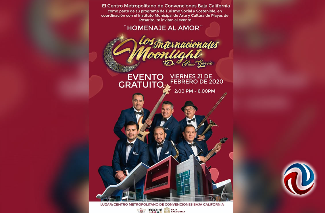 ROSARITO BC 17 DE FEBRERO DE 2020 (AFN). – El Instituto Municipal de Arte y Cultura (IMAC) de manera coordinada con instancias de gobierno anunció en el marco del Día del Amor y la Amistad, un concierto gratuito con “Los Internacionales Moonlight” de Paco García, en el Centro Metropolitano de Convenciones de Baja California Center.