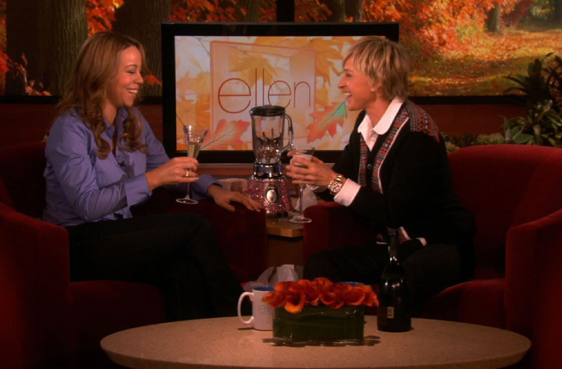 En aquel entonces Carey asistió al programa de Degeneres mientras esperaba un bebé con Nick Cannon, y aunque la cantante manifestó que quería cambiar de tema, Ellen insistió dándole una copa de champagne para celebrar “que no estaba embarazada”. Posteriormente, Mariah fingió tomar la bebida y la conductora gritó: “¡Estás embarazada!”.
