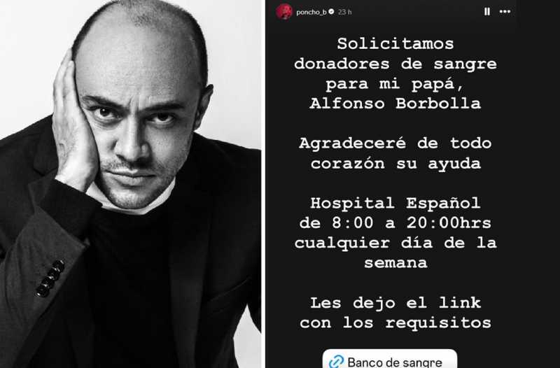 “Solicitamos donadores de sangre para mi papá, Alfonso Borbolla. Agradeceré de todo corazón su ayuda. Puede ser cualquier tipo de sangre. Los donantes deben acudir al Hospital Español, de lunes a viernes, en horario de 8 de la mañana a 8 de la noche”.