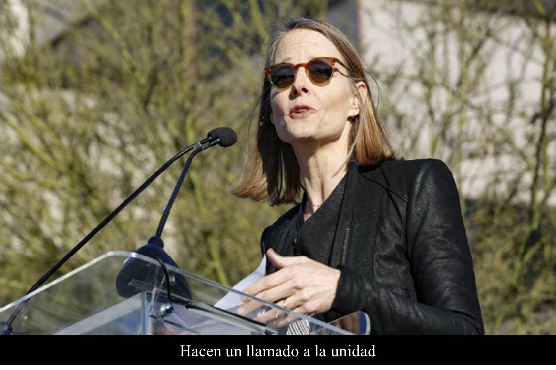 Ante unas mil 200 personas reunidas frente a las instalaciones de la Agencia United Talent de Beverly Hills, Foster declaró que aunque en el pasado se ha alejado del activismo político, "es momento de dar la cara. Es momento de comprometerse”.