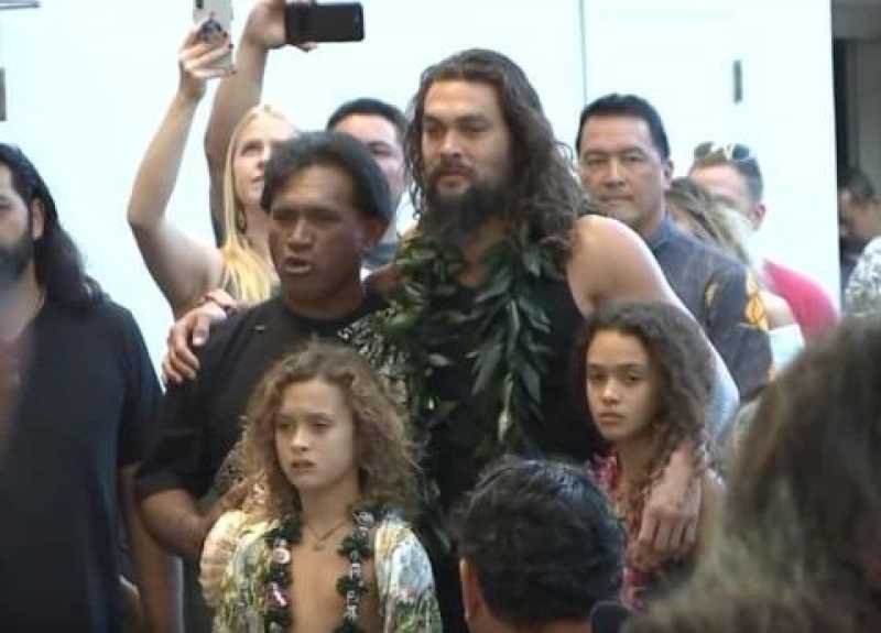 CIUDAD DE MÉXICO 9 DE ENERO 2019 (LA SILLA ROTA).- En redes sociales se encuentra circulando un video que exhibe al actor Jason Momoa, protagonista de "Aquaman", manoseando a su hija, Lola lolani Momoa, durante la premier de la cinta en Hawái.
