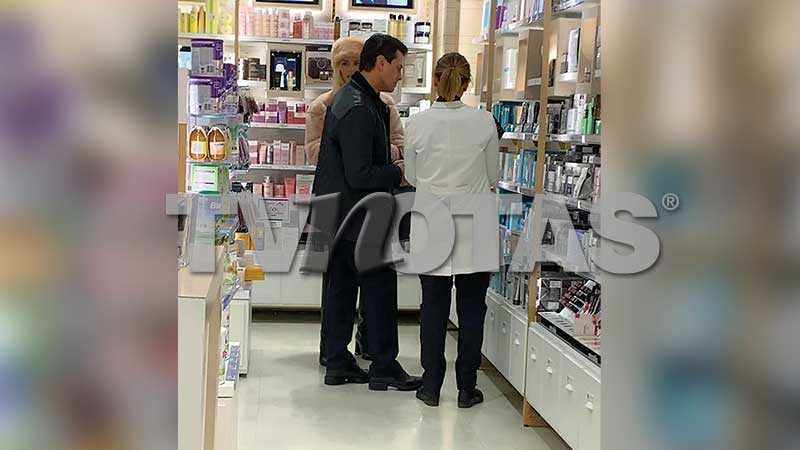 En la fotografía, Peña Nieto muestra su calzado al estar parado junto Ruiz Eichelmann en el momento en que una vendedora les ofrece alguno de los productos de la farmacia donde se encontraban.