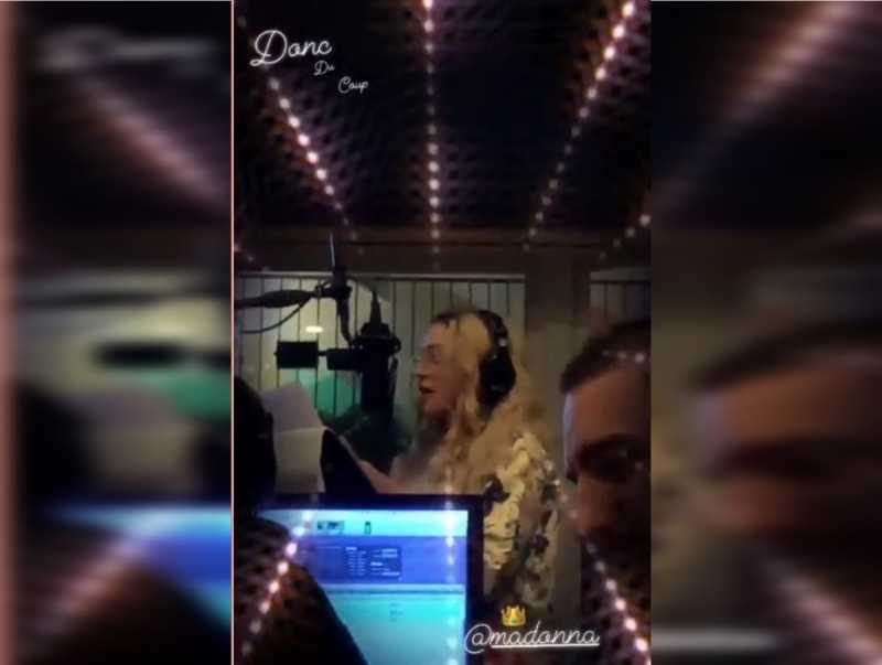 En las imágenes compartidas por la cuenta de Instagram de Marvin Gofin, coreógrafo de Madonna, se ve a la artista cantando en una cabina mientras que el intérprete de “Felices los 4” la escucha con atención.