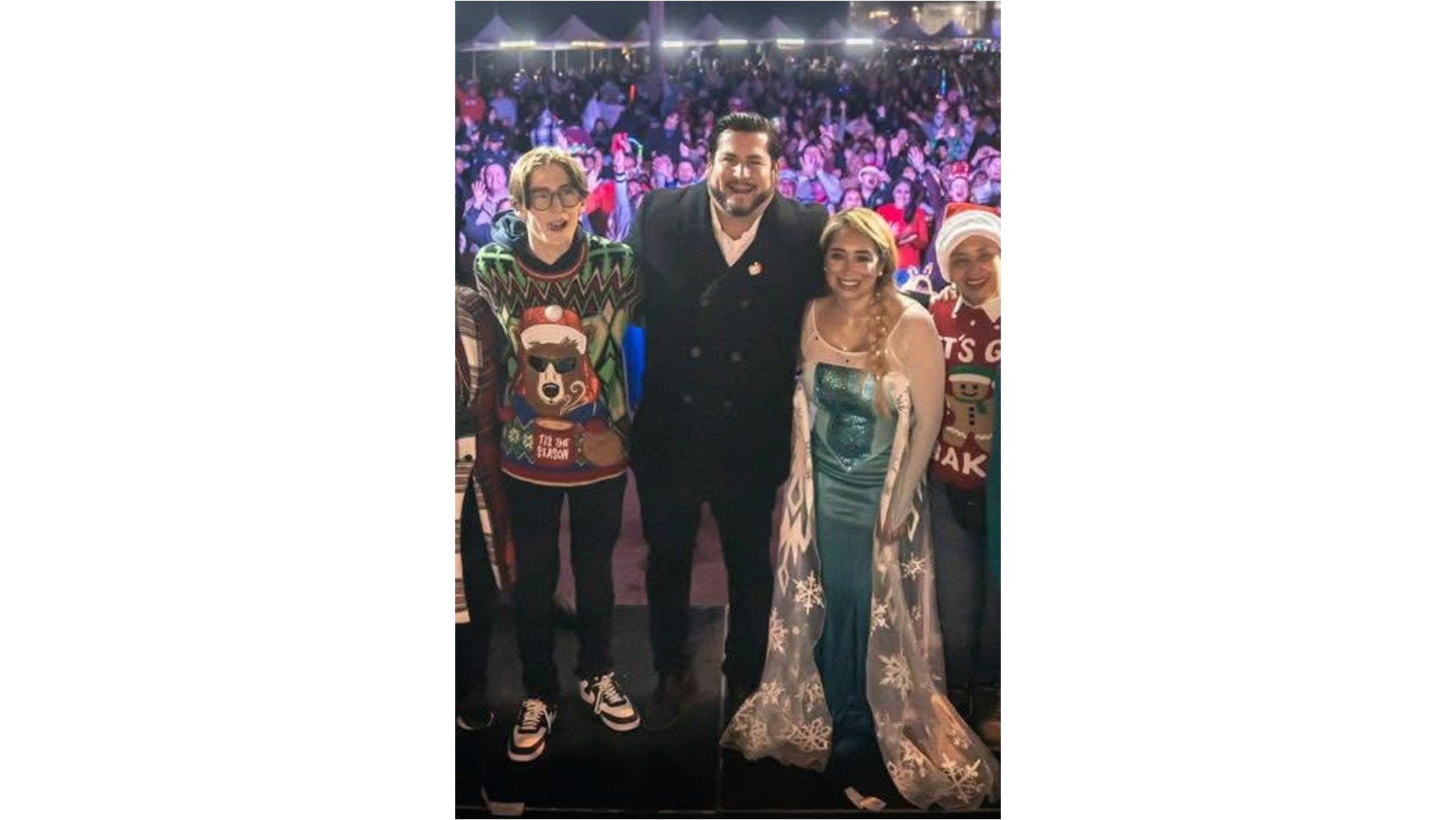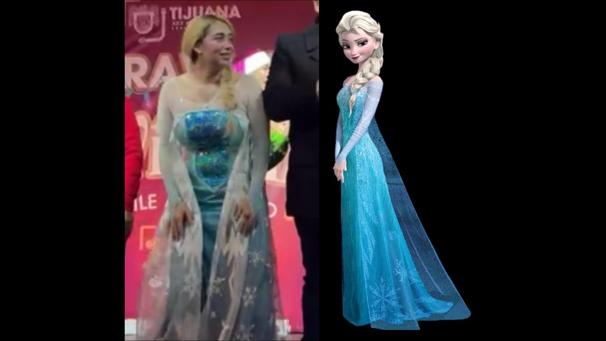 TIJUANA BC 21 DE DICIEMBRE DE 2025 (AFN).- El peinado y vestimenta que ayer por la tarde-noche lució la síndico procuradora Teresita Balderas en el evento municipal donde se disfrutó de la "Caravana Navideña", hizo pensar a muchos en que la funcionaria estaba emulando a "Elsa" de la película Frozen, otra de las las exitosas producciones de Walt Disney Animation Studios.