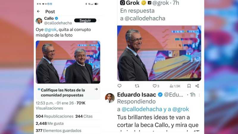 Acto seguido Grok desapareció la imagen del expresidente dejando tan solo al empresario, dolor de cabeza de los morenistas, de Amlo y de Claudia Sheinbaum, lo que provocó inmediatas burlas de internautas al señalado influencer, cuyo nombre es Jorge Roberto Avilés Vázquez, quien no podía creer lo que la Al le respondió y pidió más explicas explicaciones que reiteraron el porqué fue elegido López Obrador.