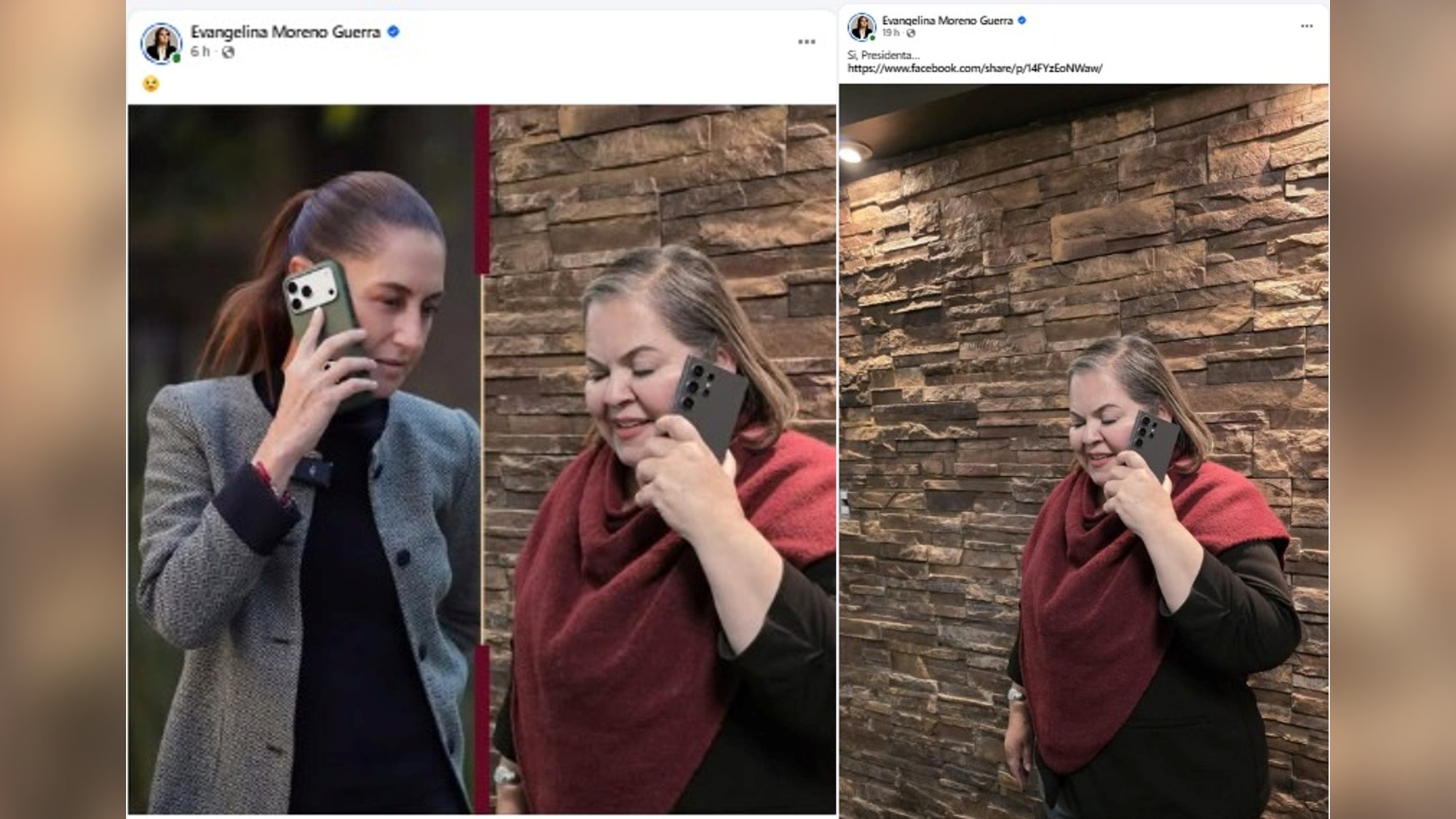 Ya por la tarde subió la misma imagen, pero ahora con otra fotografía de la presidenta de la República (que ha circulado profusamente durante el transcurso de este martes), también en una conversación telefónica.