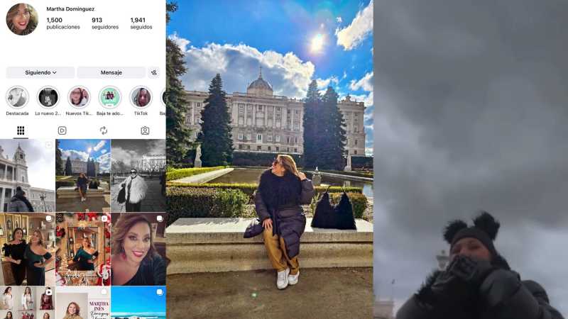 Pero a Martha Domínguez le dio por hacer turismo más que promoverlo, y se estuvo tomando las infaltables fotografías del recuerdo en lugares icónicos de la "madre patria", sin que faltara el Palacio Real de Madrid, residencia oficial de los reyes Felipe VI y Leticia.