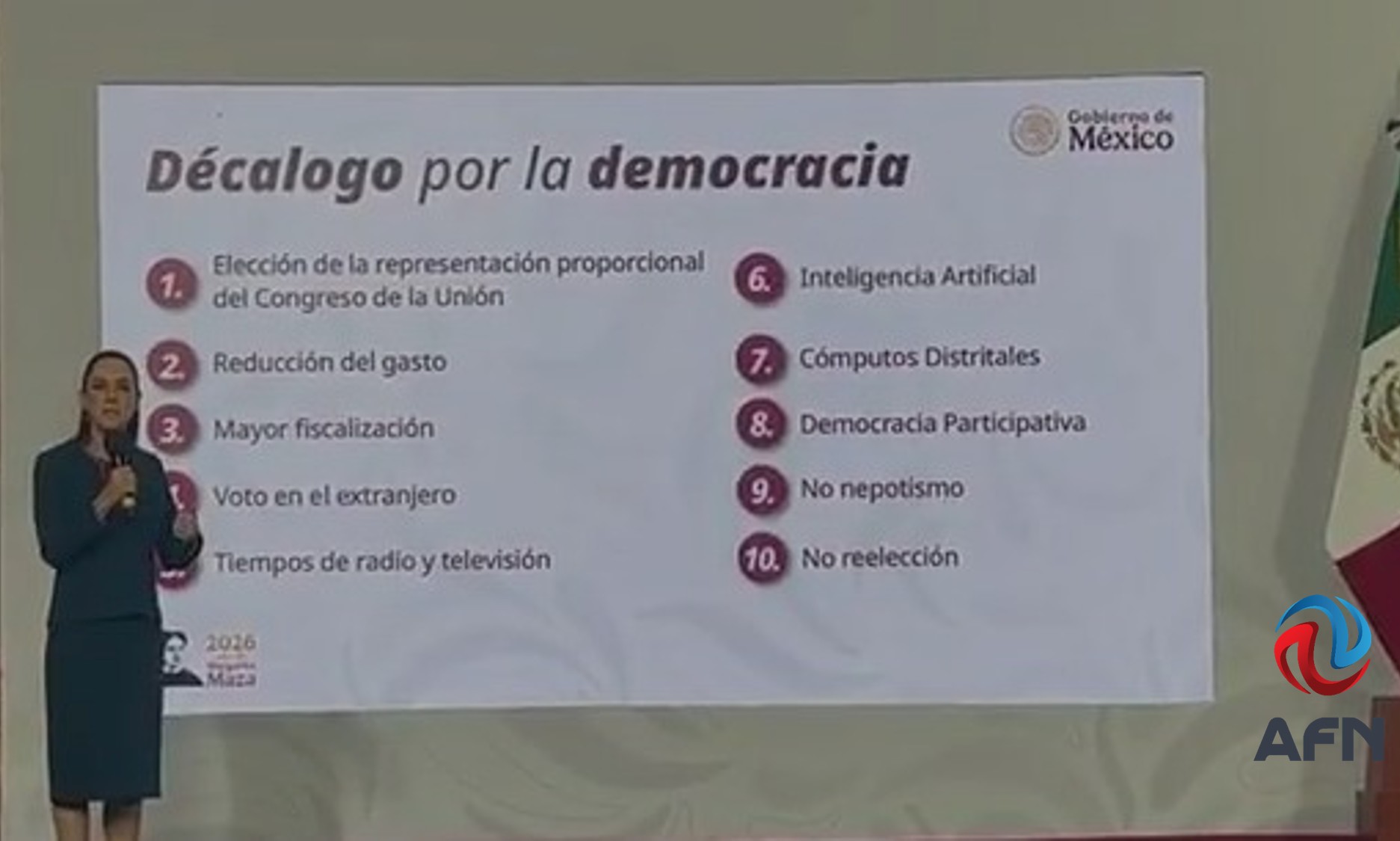 Por eso no importa que el Decálogo por la Democracia que presentó esta mañana la presidenta Claudia Sheinbaum en su tradicional conferencia de prensa, hubiese mudado el acento de la "a" en que la "vieja escuela mexicana" la puso en la antepenúltima sílaba, para irse a la "e" de la sílaba previa y convertirse en una palabra sobreesdrújula.