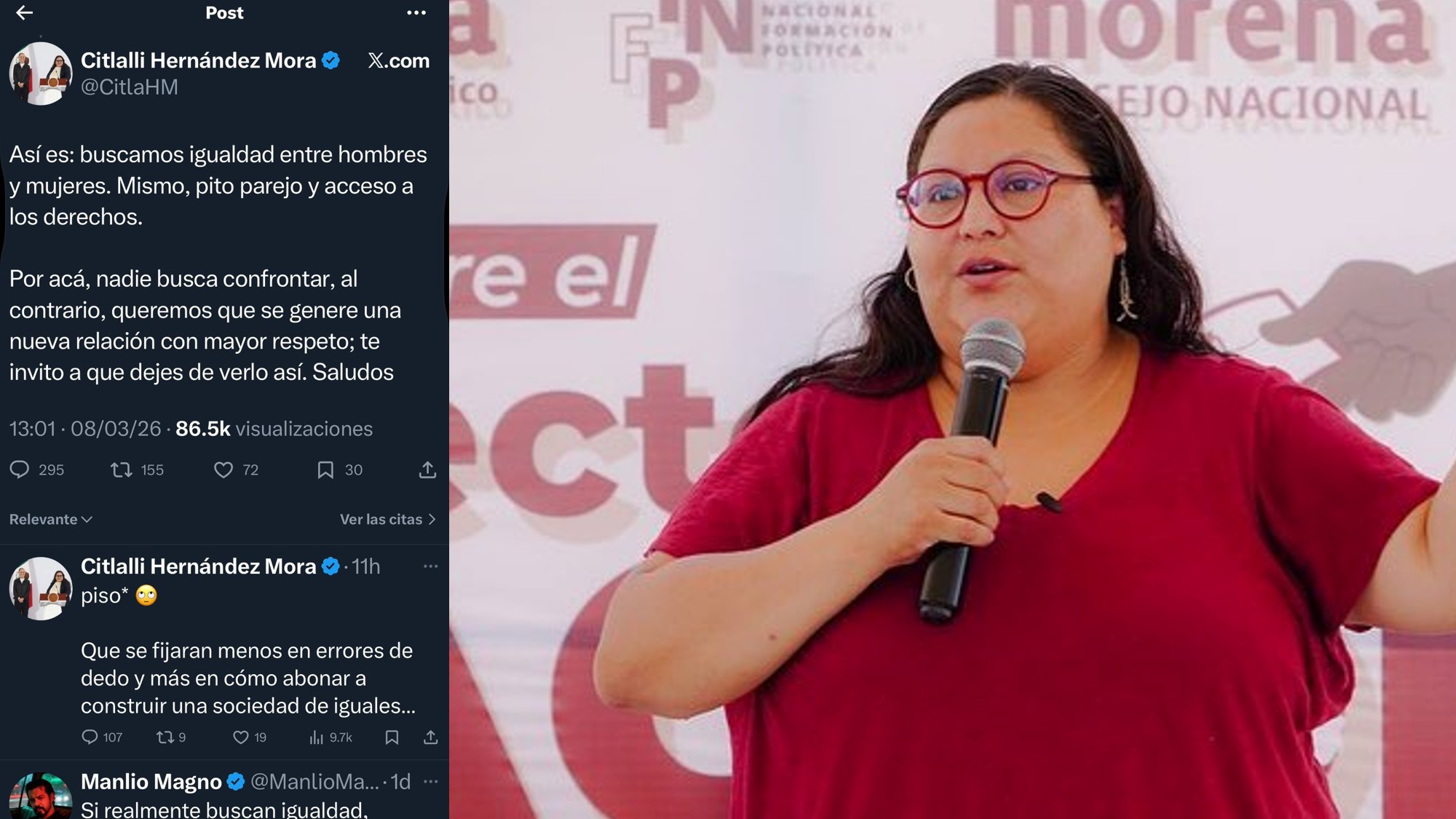 Sin embargo, por los comentarios que estuvo recibiendo ayer, le quedó claro lo que escribió en X, pero en lugar de borrarlo hizo una corrección horas después, aunque pareció indignada, ya que escribió junto con la corrección: "que se fijaran menos en errores de dedo y más en cómo abonar a construir una sociedad de iguales".