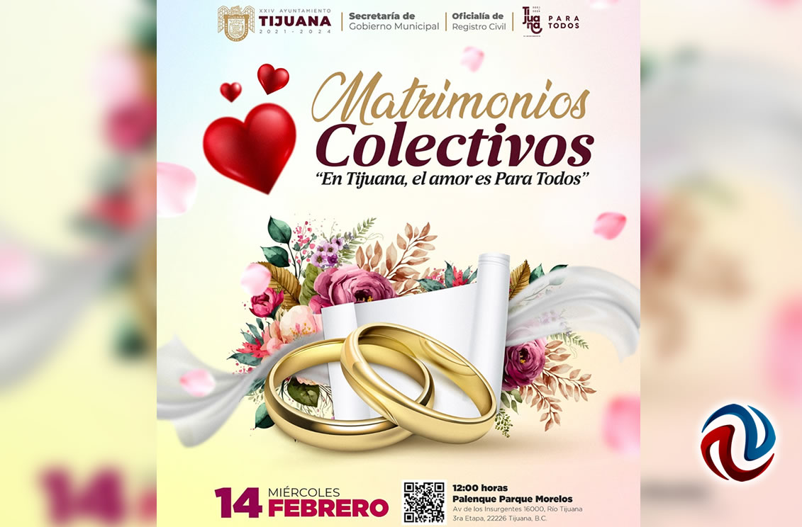 TIJUANA BC 2 DE FEBRERO DE 2024 (AFN).- Concluirá este siete de febrero la recepción de documentos para participar en los matrimonios colectivos 2024; “En Tijuana, el amor es para todos”, que se realizarán el próximo 14 de febrero, en el Palenque del Parque Morelos.