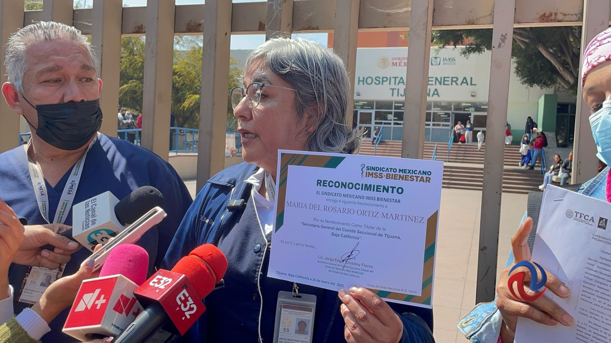 TIJUANA BC 25 DE MARZO DE 2025 (AFN).- Integrantes del Sindicato Mexicano de Salud (SIMESA) IMSS-Bienestar se manifestaron este martes en el exterior del Hospital General de Tijuana, en protesta porque las autoridades, dijeron, no les permiten entrar con sus compañeros a darles las opciones que tienen como libertad sindical.