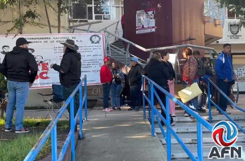 TIJUANA BC 17 DE OCTUBRE DE 2025 (AFN).- Maestros de la Coordinadora Nacional de Trabajadores de la Educación (CNTE) realizaron un paro nacional de 24 horas desde la mañana de este viernes, exigiendo diversas situaciones, por lo que se manifestaron en las instalaciones de la Secretaría de Educación.