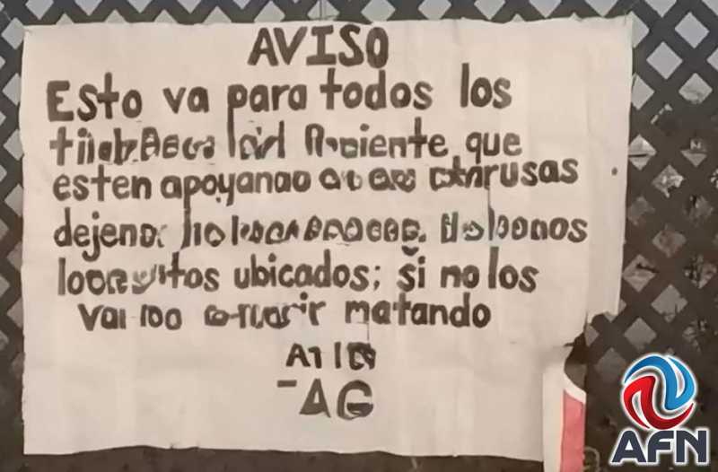 En el mensaje, atribuido presuntamente a “Los Chapitos” —una facción del Cártel de Sinaloa— lanza amenazas directas contra el grupo rival conocido como “Los Rusos”, advirtiendo que conocen sus puntos de venta de droga y que habrá consecuencias letales si persiste el apoyo hacia ellos.