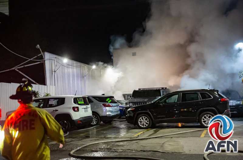 Al arribar los bomberos, confirmaron que se trataba de un incendio de gran magnitud dentro del lote de compra y venta Cami Corporativo Abasolo, donde las llamas ya alcanzaban varias unidades; en total, siete vehículos resultaron afectados, entre ellos un Corvette 2015 blanco que terminó en pérdidas totales por la intensidad del fuego, además de una motocicleta con daños parciales.