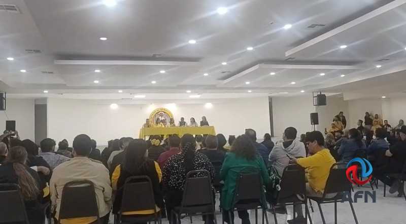 MEXICALI BC 19 DE NOVIEMBRE DE 2025 (AFN).- La representante legal del Sindicato de Burócratas sección Mexicali, Selene Cota Bernal, convocó a una sesión extraordinaria este miércoles 19 de noviembre donde como único punto era el colegio electoral, pero los gritos de los asistentes le impidieron llevar a cabo la asamblea.