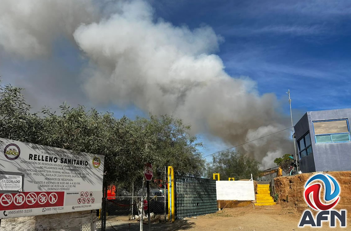 TECATE BC 12 DE DICIEMBRE DE 2025 (AFN).- Un incendio registrado durante las primeras horas de este viernes (vecinos reportaron que desde las 05:00 horas) en el Centro de Transferencia de Residuos ubicado en Paso del Águila, movilizó al Cuerpo de Bomberos de Tecate; es la segunda vez que se quema este año, desde su inauguración en junio.