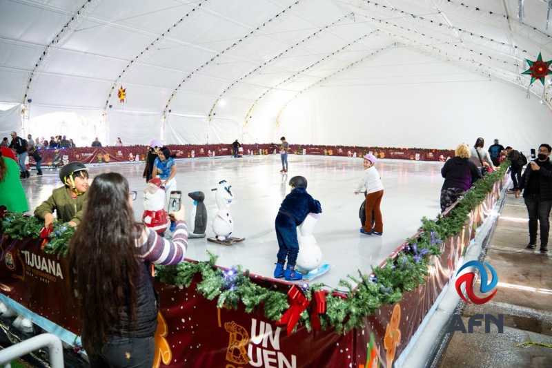 TIJUANA BC 14 DE DICIEMBRE DE 2025 (AFN).- Decenas de familias tijuanenses acudieron este fin de semana a la explanada del Monumento a la Madre, a un costado del Palacio Municipal, para disfrutar de la pista de hielo instalada como parte de las actividades decembrinas del ayuntamiento de Tijuana.